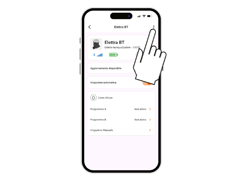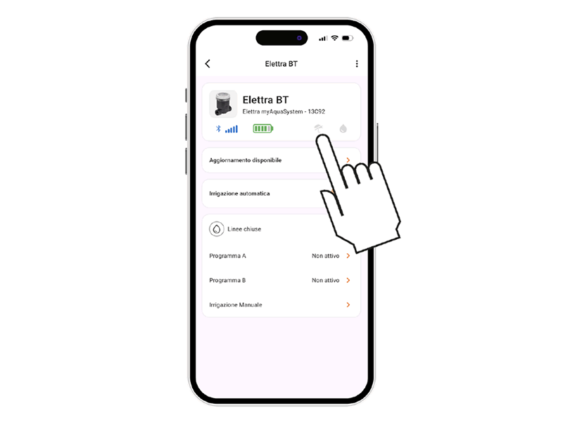 Para activar el riego manual desde el programador, pulse varias veces el botón de Elettra BT hasta que el LED parpadee en VERDE.