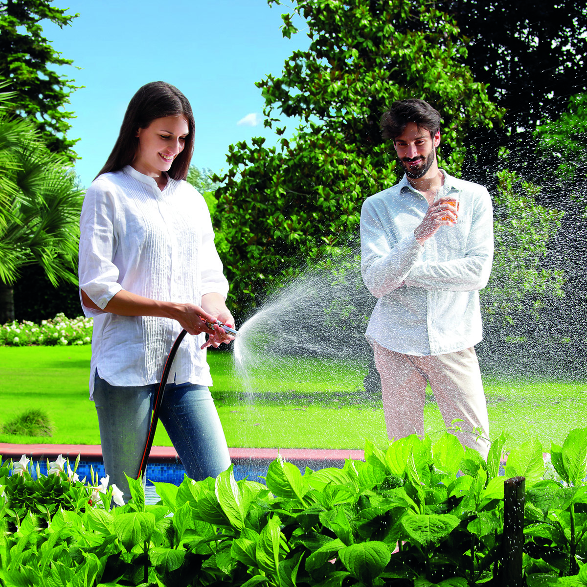 Brillante a la vista y también en sus prestaciones, esta lanza de riego está fabricada en sólido latón cromado.
