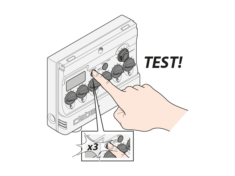 Appuyez plusieurs fois sur la touche TEST jusqu'à sélectionner le circuit que vous voulez activer ; quelques secondes après la vanne correspondante s'ouvre pendant 5 minutes.