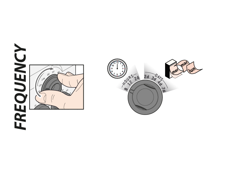 Pour programmer la fréquence d'arrosage, tournez le sélecteur FREQUENCY sur la position voulue (TOUTES LES 8-12-24 heures ou 2-3-4-7 jours).