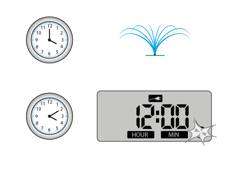 Ex. : si vous avez démarré l'arrosage à 20:00 en appuyant sur la touche START+..., le sélecteur FREQUENCY étant programmé sur 8 heures, l'arrosage suivant démarrera à 4:00 du matin.