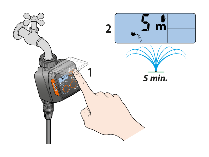 Appuyez sur la touche « START ». Un arrosage d'une durée de 5 minutes non modifiable partira.