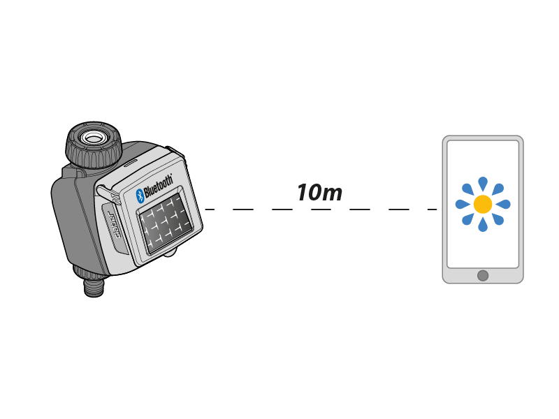 Pendant les opérations de communication entre l’application et le programmateur, tenez-vous à moins de 10 m du programmateur.