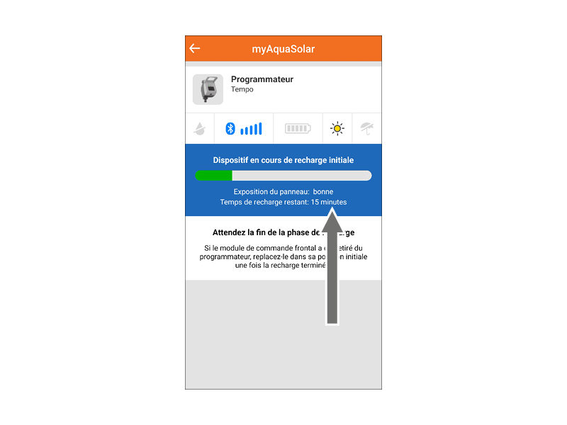 Si l’icône du niveau d’énergie est grise, placez le programmateur avec le panneau photovoltaïque exposé à la lumière directe du soleil.