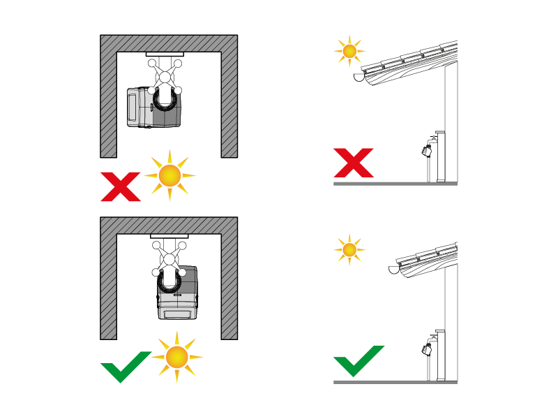 Une fois le programmateur installé, assurez-vous que le panneau photovoltaïque pointe vers la zone ouverte d’où provient la plus grande quantité de lumière pendant la journée afin de garantir un chargement correct.