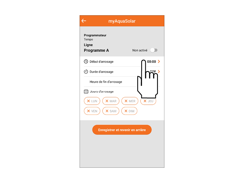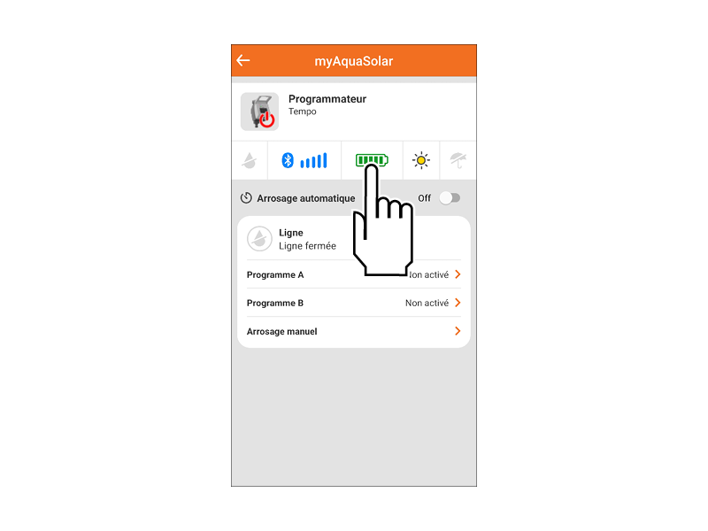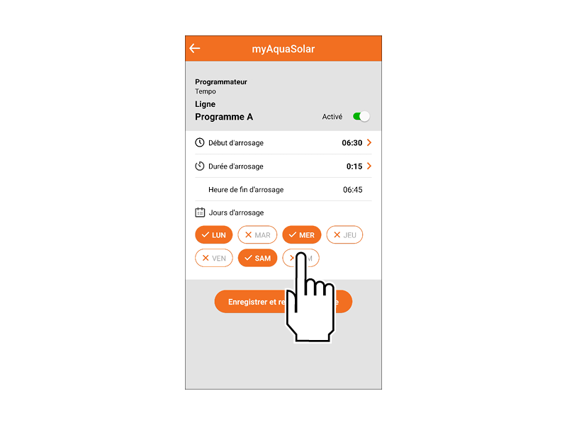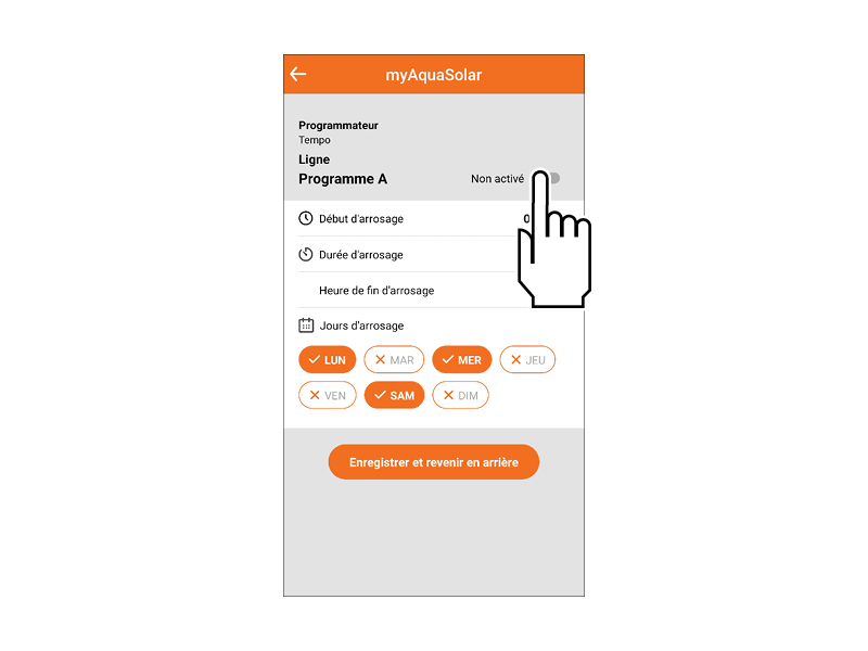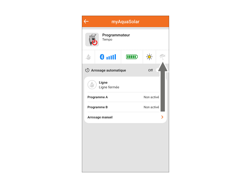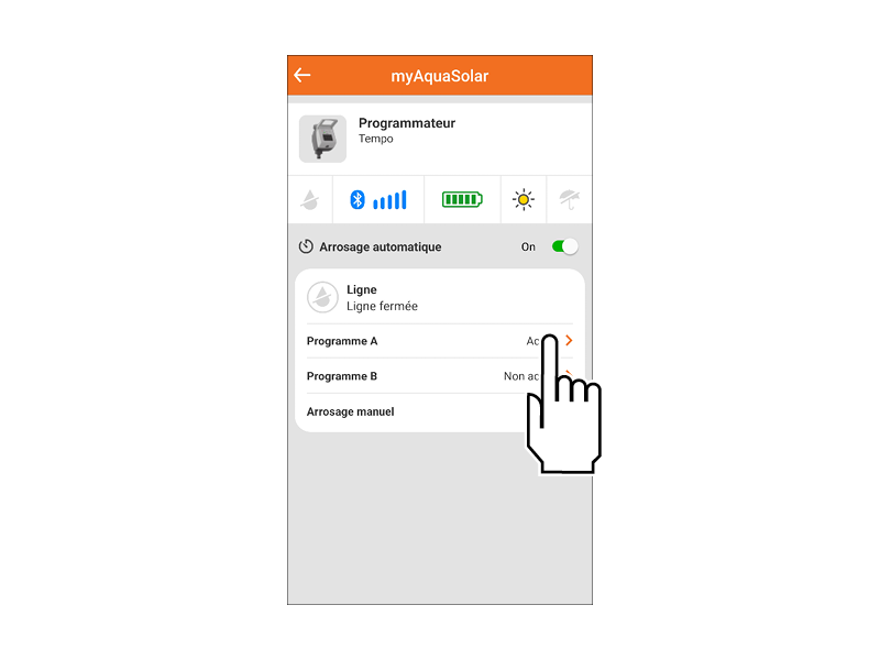 Tempo myAquaSolar propose 2 programmes d’arrosage A et B. Sélectionnez celui souhaité.