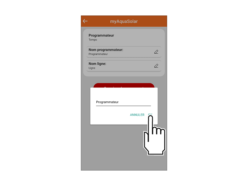 Depuis l’application myAquaSolar, il est possible de donner un nom au programmateur ou à ses lignes d’arrosage.