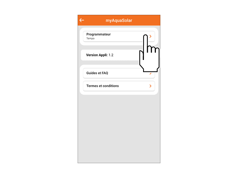 Un programmateur peut être supprimé depuis l’application myAquaSolar. Ouvrez le menu de l’application myAquaSolar.