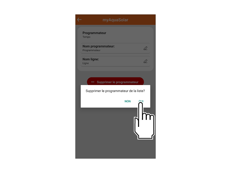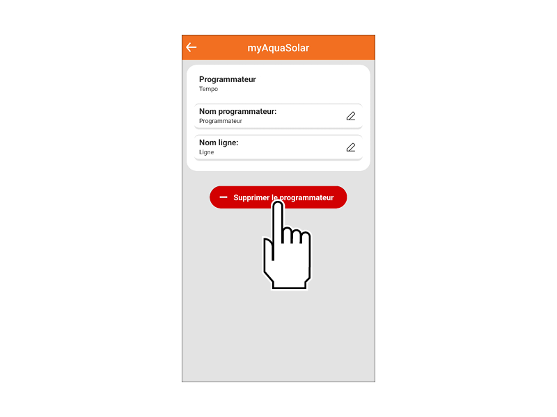 Le programmateur ne sera plus affiché dans l’application myAquaSolar. Si vous souhaitez réassocier le contrôleur, répétez la procédure d’ASSOCIATION.
