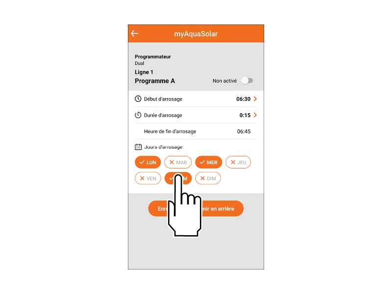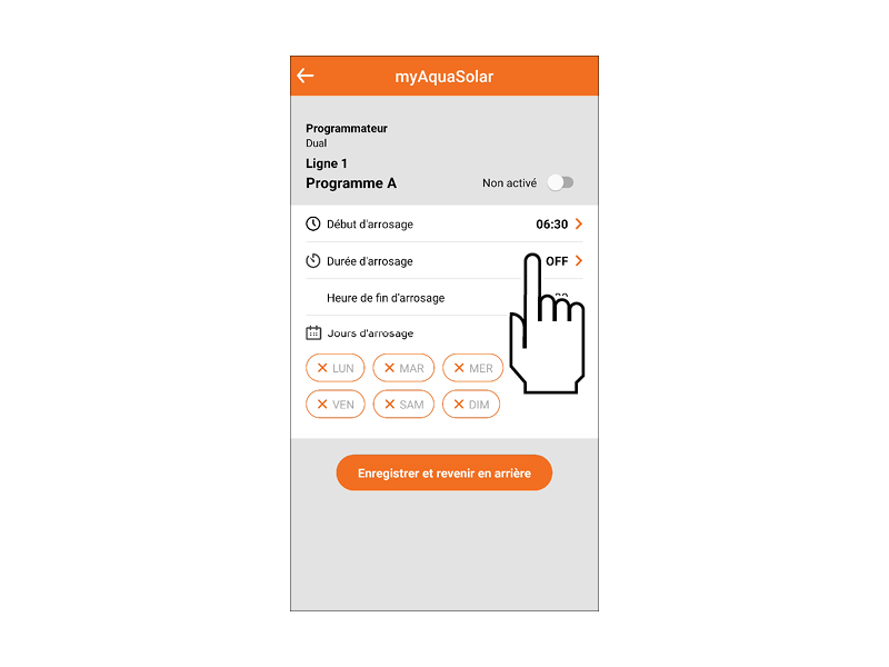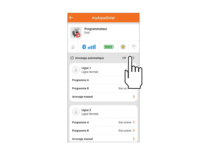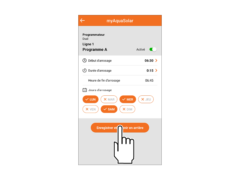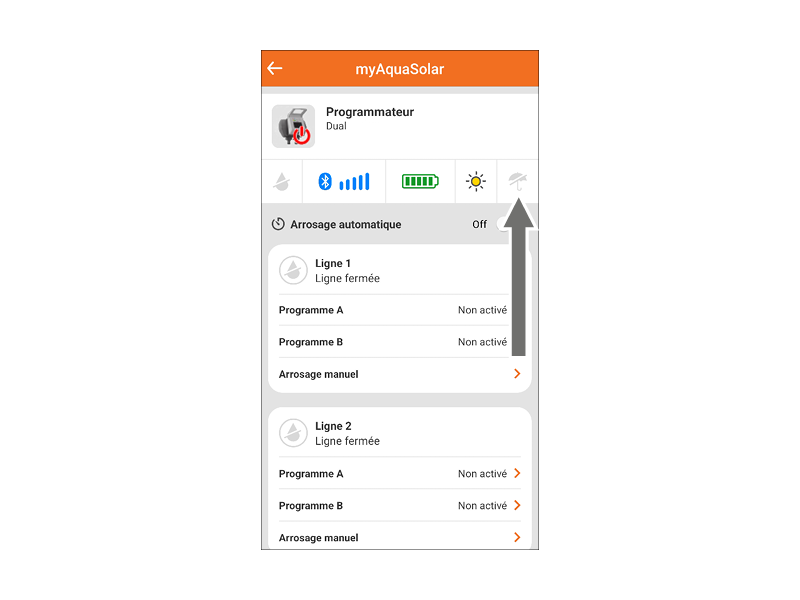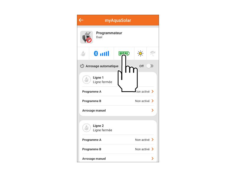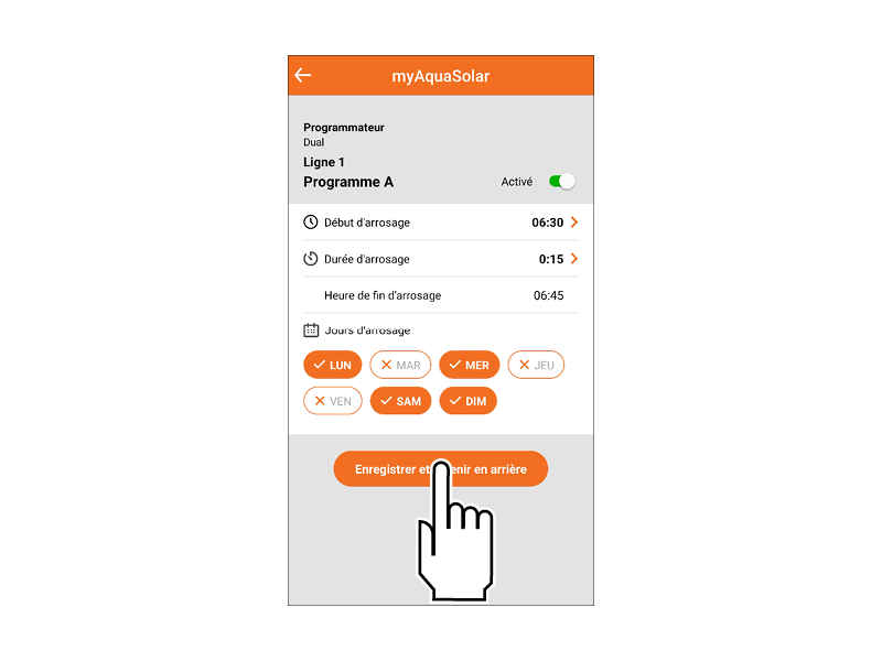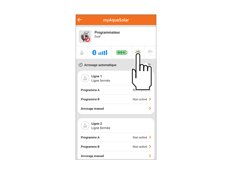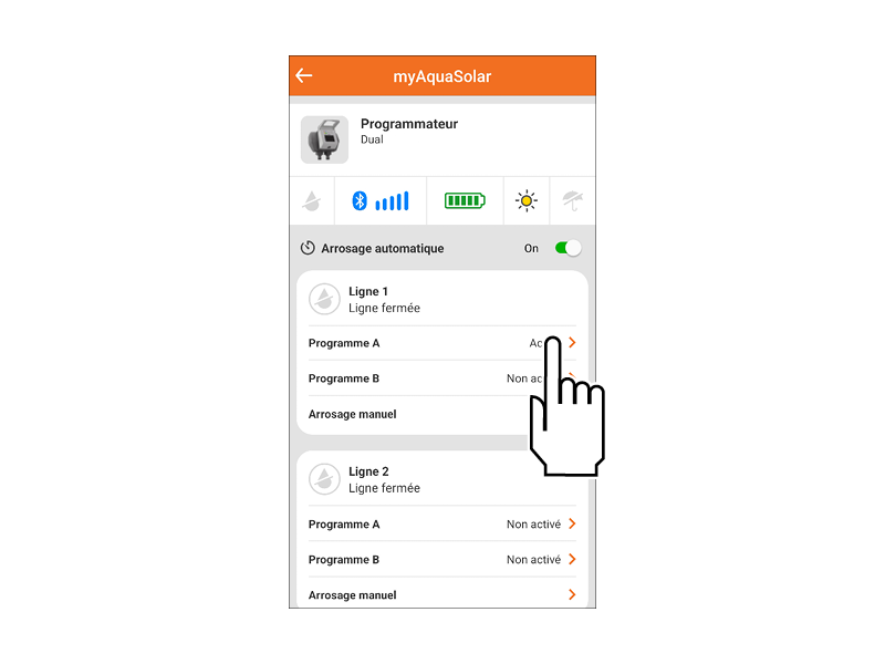 Dual myAquaSolar propose 2 programmes d’arrosage A et B par ligne. Sélectionnez celui souhaité.