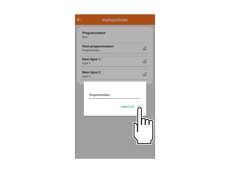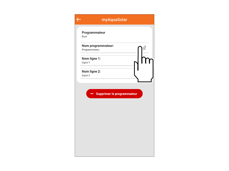 Depuis l’application myAquaSolar, il est possible de donner un nom au programmateur ou à ses lignes d’arrosage.