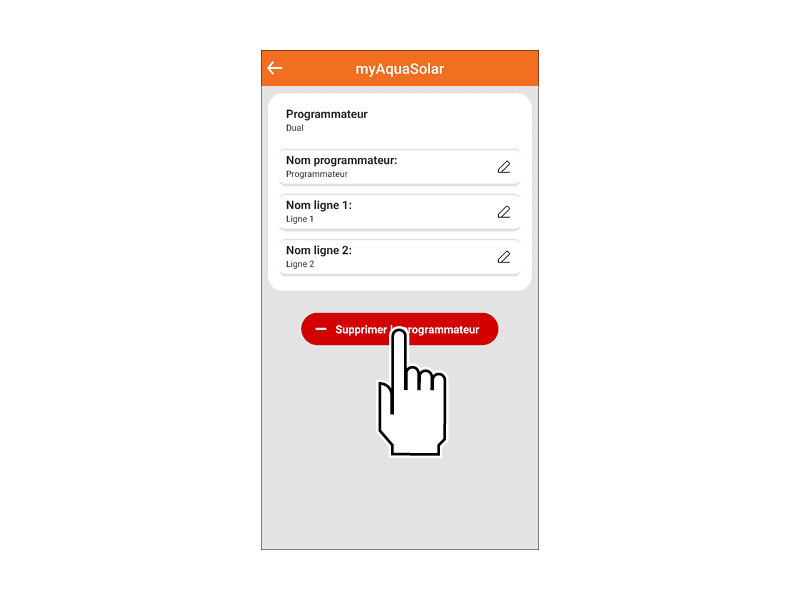 Attention : un programmateur supprimé de l’application continue les arrosages automatiques programmés mais n’apparaîtra plus sur la page-écran principale de l’application. Si vous souhaitez uniquement suspendre l’arrosage programmé, agissez sur l’interrupteur Arrosage automatique.