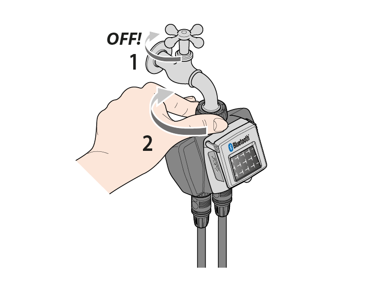 Si le programmateur se décharge complètement et s’éteint, il est possible qu’il se rallume après une exposition normale au soleil. En cas d’extinction, le programmateur perd la configuration de la date et de l’heure et les arrosages pourraient démarrer de manière anormale. En cas de doute sur l’extinction du programmateur, pour mettre à jour automatiquement la date et l’heure, approchez-le de votre smartphone d’au moins 10 m et, après avoir vérifié que l’icône Bluetooth® soit bleue, appuyez sur la carte produit dans l’application.