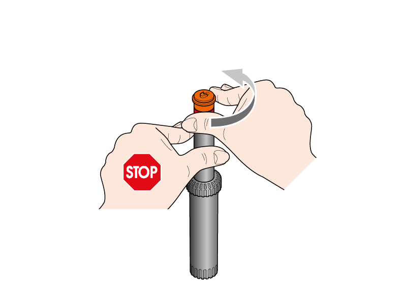 Tournez la tige en sens horaire ou antihoraire en bloquant le corps de l'arroseur.