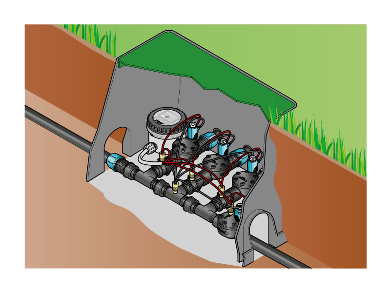 En général, les électrovannes sont installées à l'intérieur de nos regards enterrés code 90510 - 90515 - 90500.