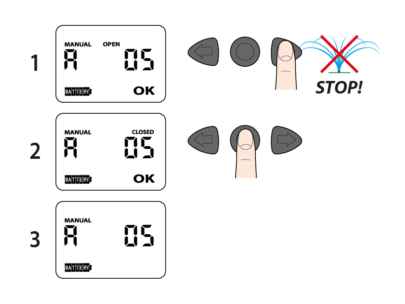 Pour interrompre l'arrosage, appuyez sur la flèche droite, puis sur ENTER.