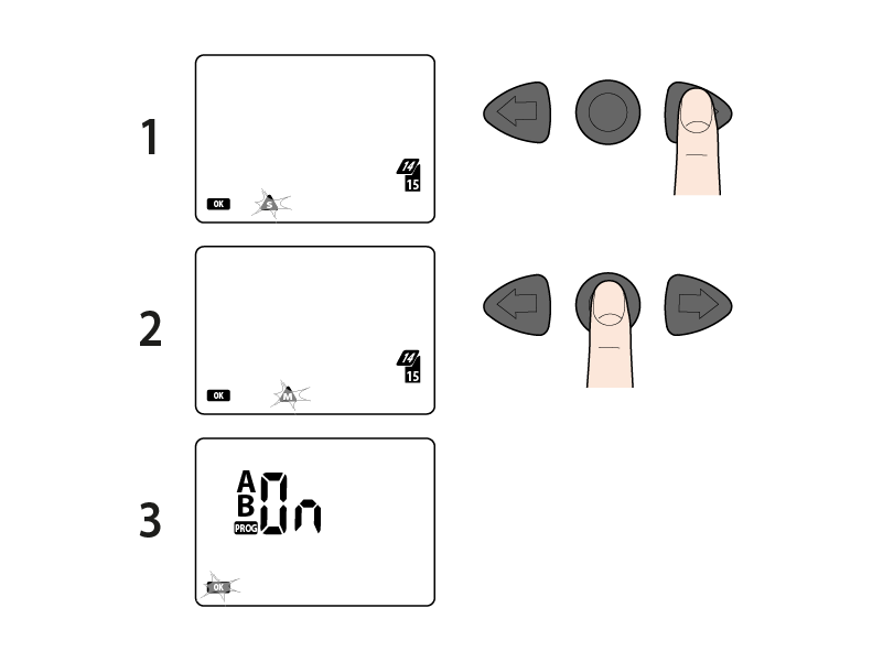 Avec l'inscription OK allumée, les flèches permettent de modifier la valeur du paramètre affiché.