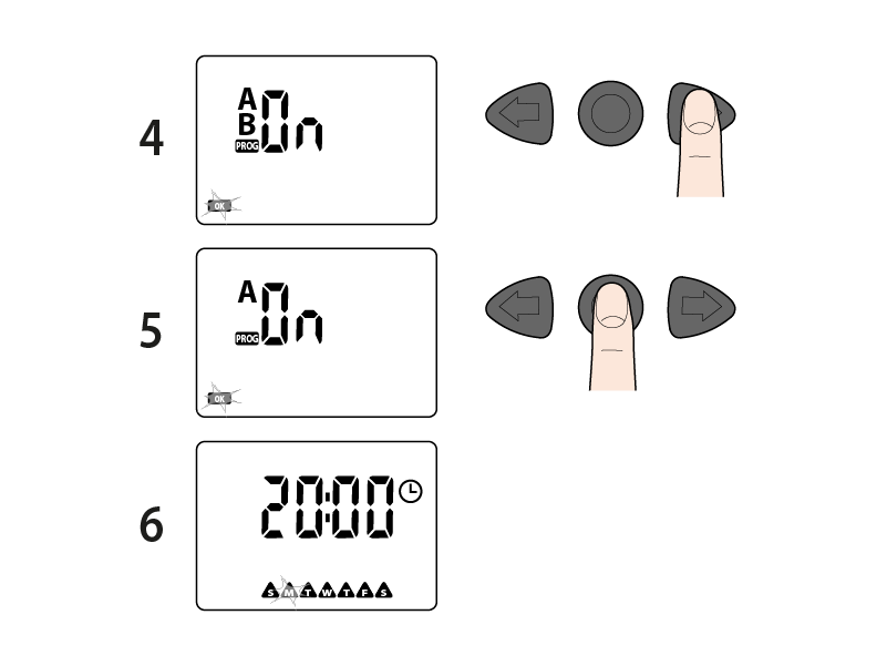 Appuyez sur les flèches pour activer le programme souhaité A, B, les deux programmes, ou bien les mettre en arrêt OFF.