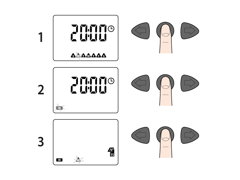 Appuyez sur la touche ENTER, l'inscription OK apparaît et les jours de la semaine disparaissent.