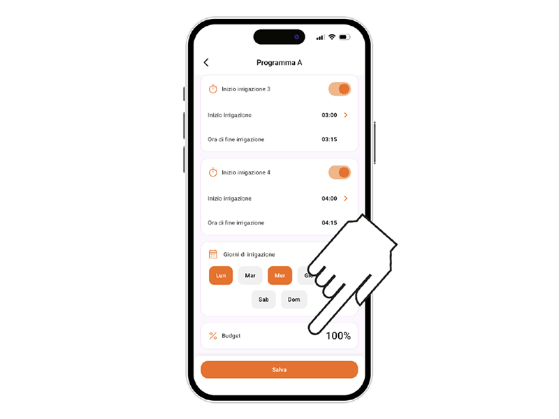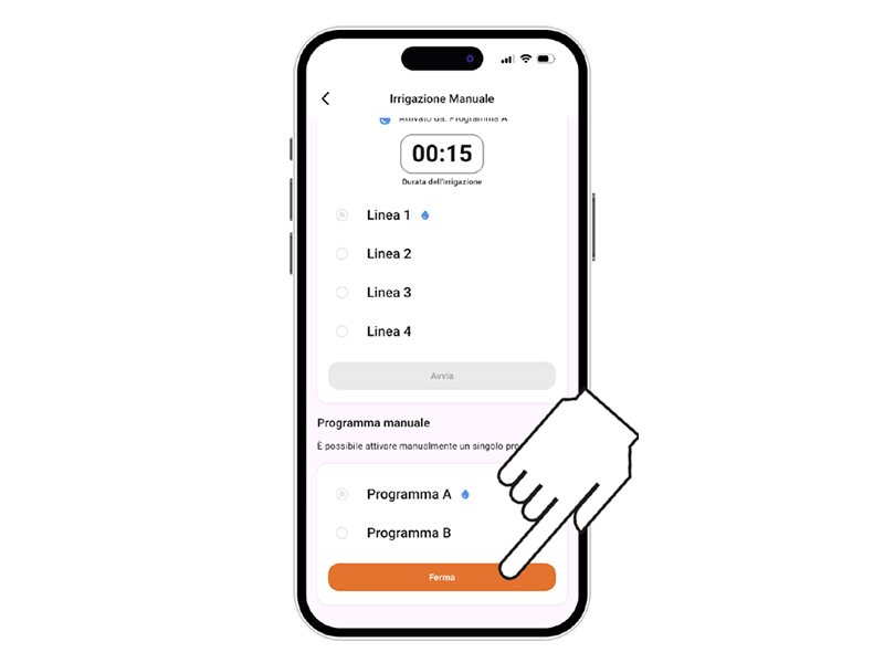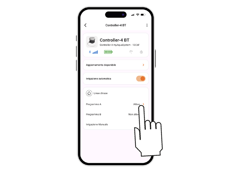 Controller4 BT propose 2 programmes d’arrosage, A et B, permettant d’ouvrir les lignes d’arrosage en séquence ou partiellement. Sélectionnez le programme souhaité.