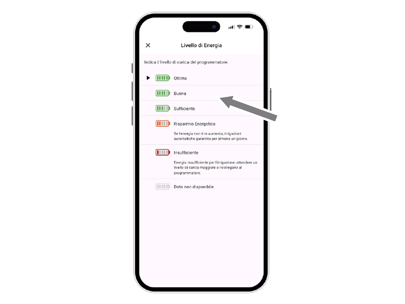 Il est particulièrement important de vérifier le niveau d’énergie visible sur la fiche du programmateur dans l’application.