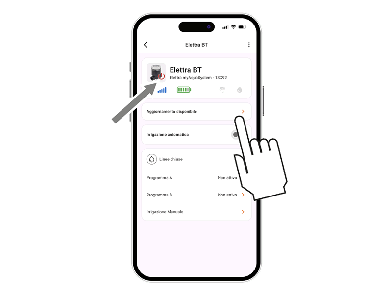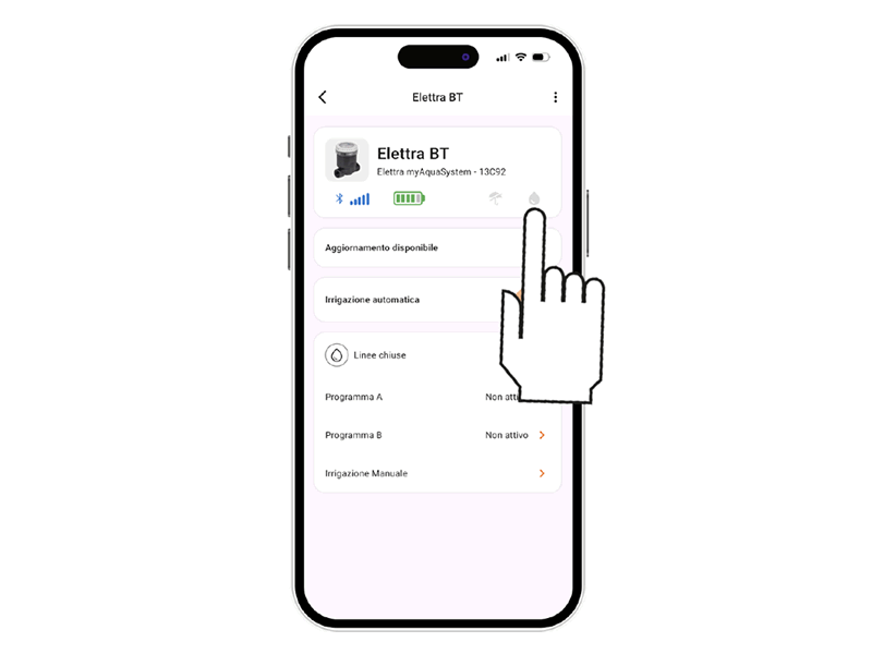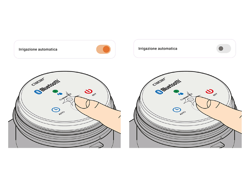 Pour activer l’arrosage manuel depuis le programmateur, appuyer plusieurs fois sur le bouton d’Elettra BT jusqu’à ce que la LED clignote en VERT.