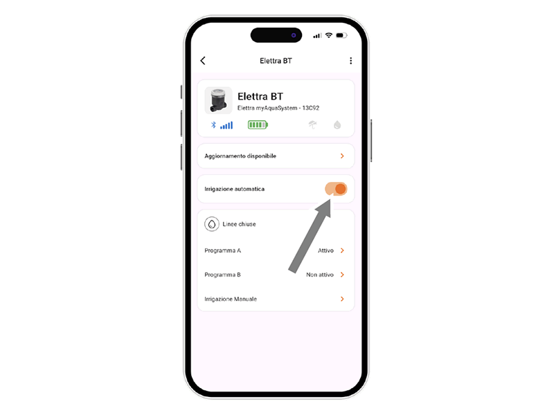 Pour activer ou désactiver l’arrosage automatique d’un programmateur, appuyez sur sa fiche produit.