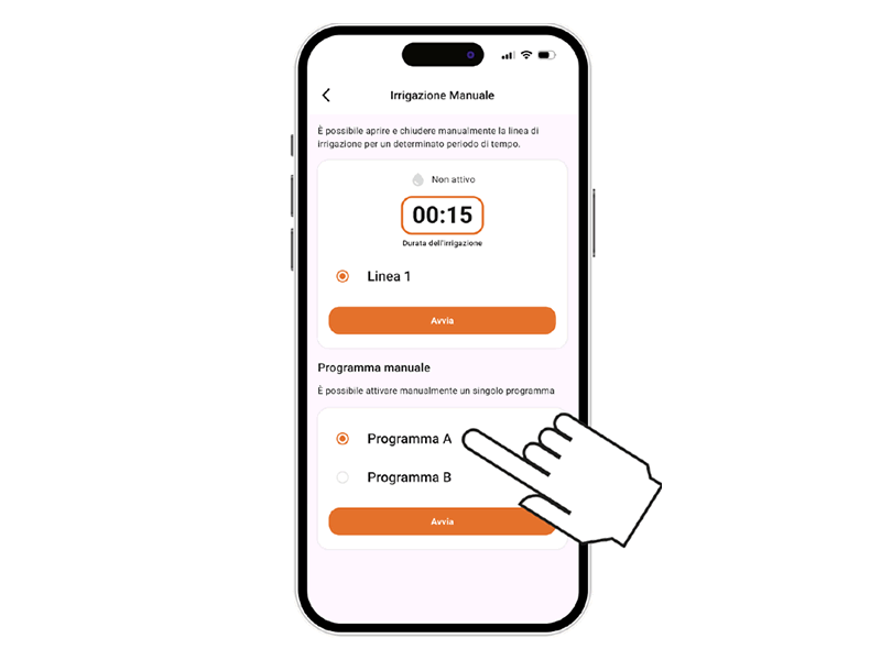 Elettra BT propose 2 programmes d’arrosage A et B, chacun permettant jusqu’à 4 heures de démarrage. Sélectionnez le programme souhaité.