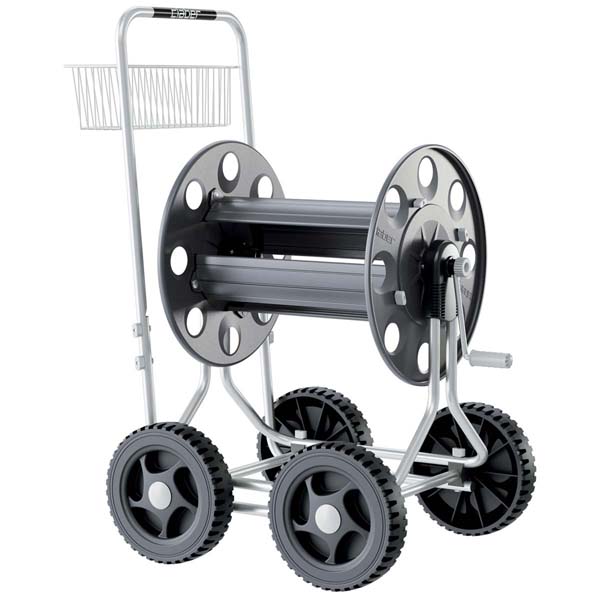 Entièrement métallique, ce chariot dévidoir garantit le bon glissement du tambour, grâce au Silent Block. Traité avec des résines époxy contre la rouille, il a un bon passage de l’eau et est fourni avec deux raccords pour les tuyaux de tous les diamètres. Les roues sont caoutchoutées pour un meilleur déplacement sur tous les terrains, même à pleine charge. Capacité idéale même pour des jardins de grandes dimensions : jusqu’à 165 mètres de tuyau de 1/2"