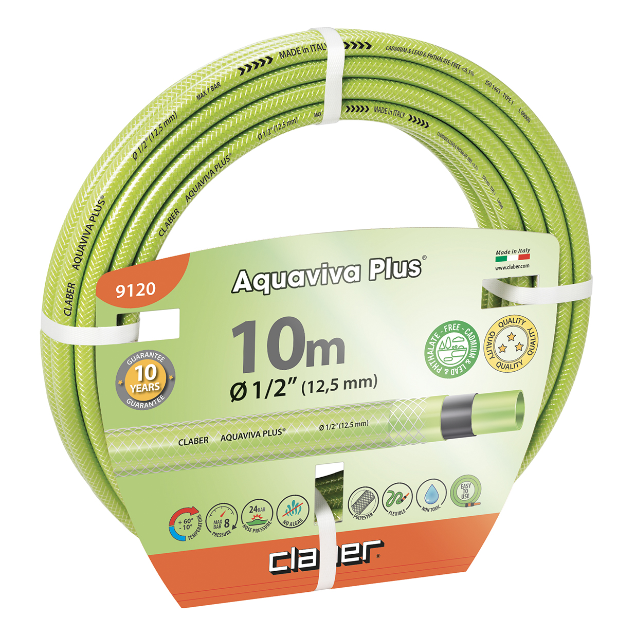 Tuyau guipé maniable avec intérieur anti-algues, robuste et flexible grâce à son armature spéciale. Les tuyaux Aquaviva Plus sont sûrs à 100% car ils sont privés de métaux lourds et de phtalates.