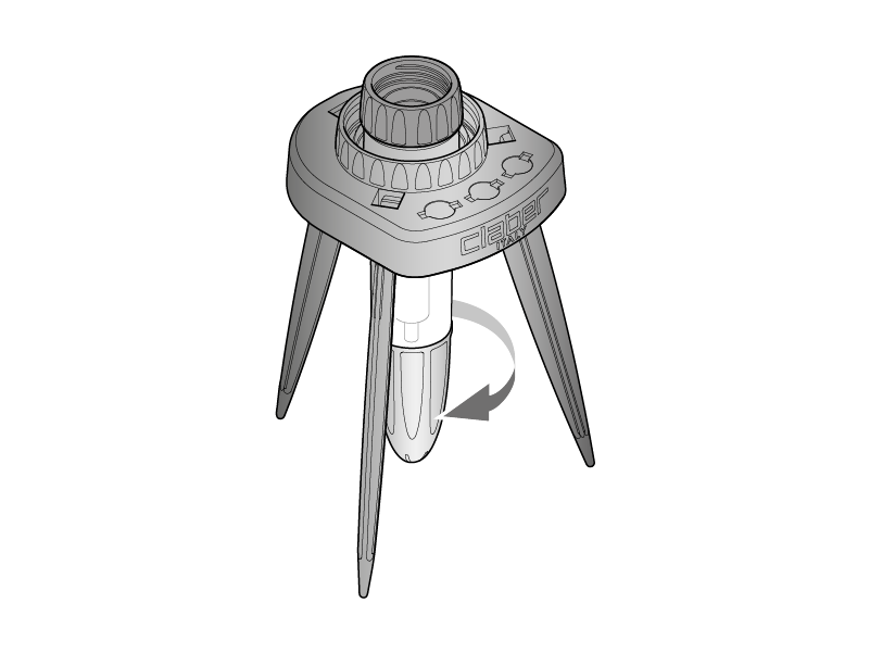 Inserire IDRIS nel terreno e fare un piccolo foro sul fondo della bottiglia. Il treppiede mantiene perfettamente stabile IDRIS sul terreno. Quando la bottiglia è vuota basta riempirla nuovamente.
