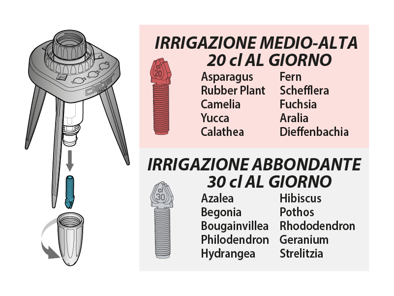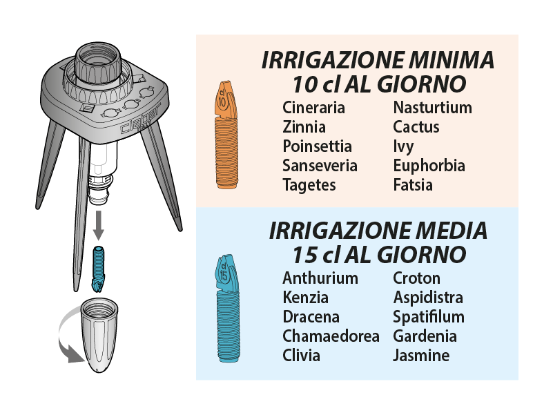 Scegliere il gocciolatore più adatto al tipo di pianta.