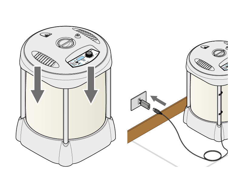 Posizionare Aqualux System (tenere presente che con serbatoio pieno il peso è di circa 33 kg) e collegare il tubo.
