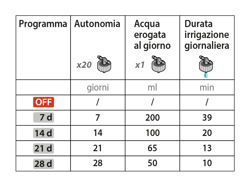 Dopo la prima partenza, le irrigazioni successive avranno luogo ogni 24 ore nei giorni rimanenti.