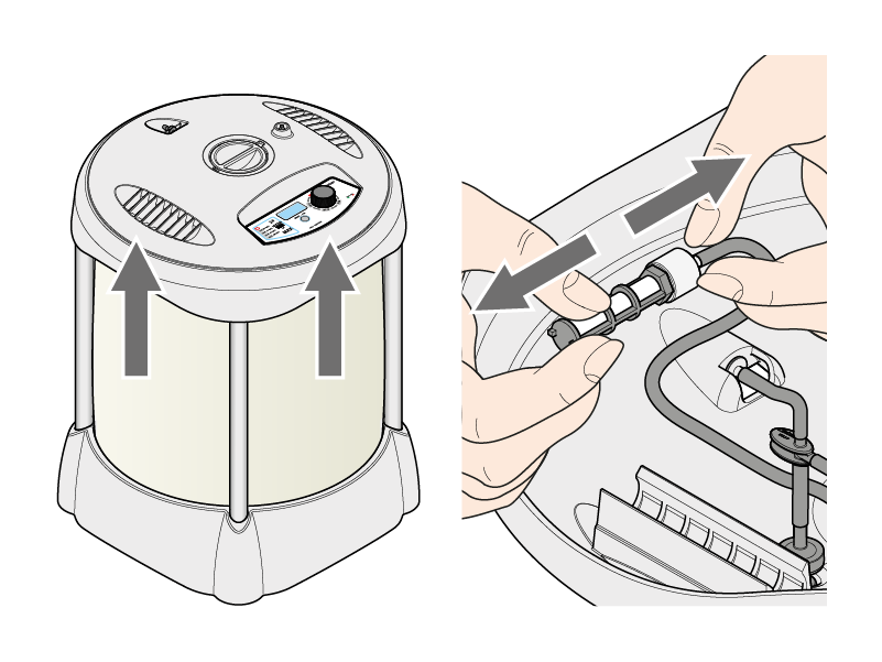 Smontare Aqualux riponendo i vari componenti all’interno della base e impacchettare il serbatoio appoggiandolo sotto al coperchio.
