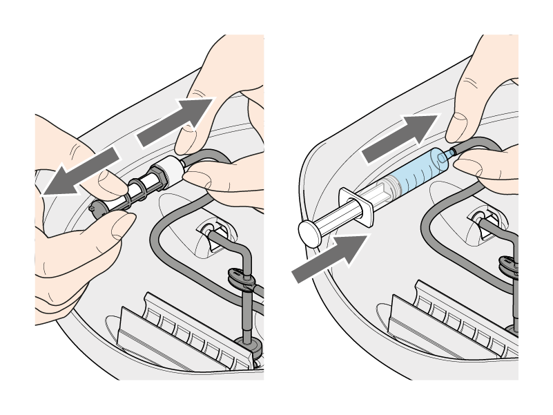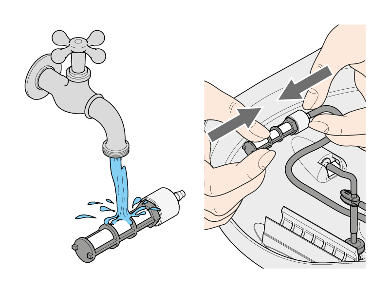 Estrarre il filtro di pescaggio acqua. A questo punto inserire nel tubetto una siringa senza ago, contenente acqua e spruzzarla all'interno. Se necessario, ripetere l'operazione più volte.