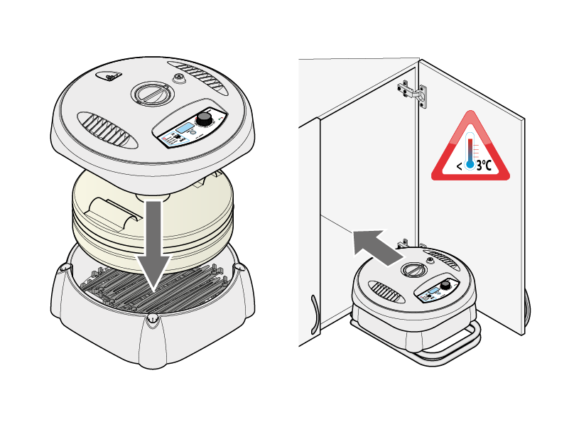 Riporre il tutto in un luogo asciutto, dove la temperatura non scenda al di sotto di 3°C.