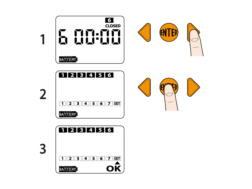 Sul display appare OK ad indicare che si può impostare l’orario di chiusura utilizzando le frecce (es 05:20). Confermare l’orario premendo ENTER.