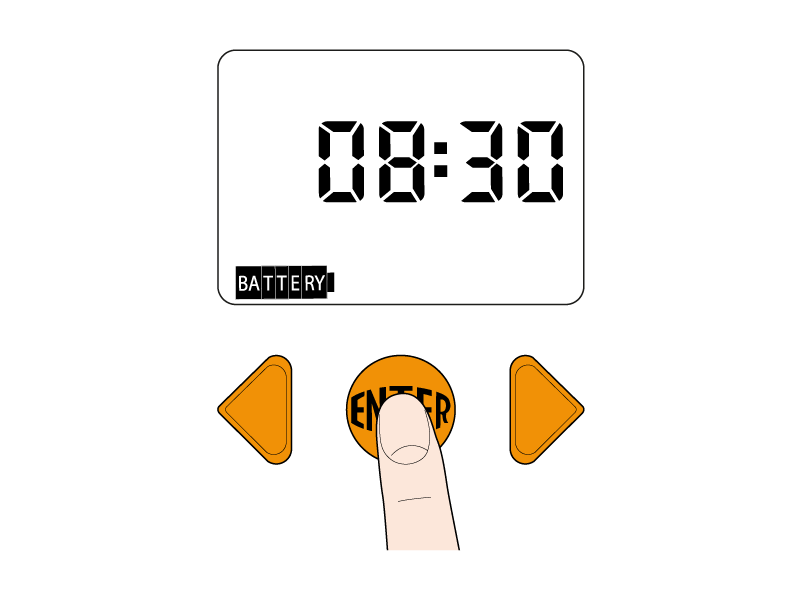 Premere una delle frecce per impostare l’ora corrente. Tenendo premuta la freccia la programmazione avanza più velocemente.