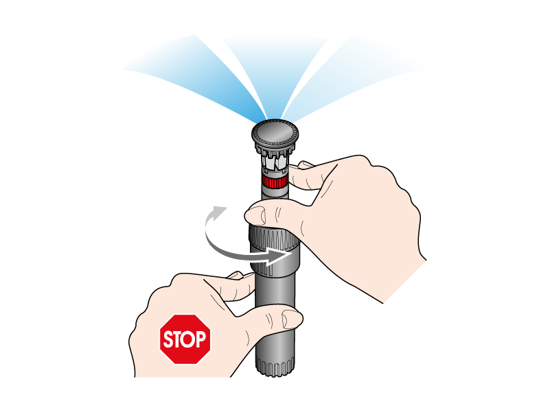 Ruotare la ghiera rossa in senso orario o antiorario per aumentare o diminuire la gettata dell’irrigatore.