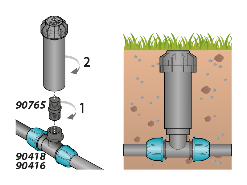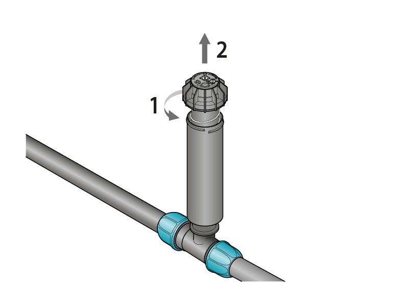 Avvitare l’irrigatore alla prolunga filettata da 3/4” posta nel terreno,