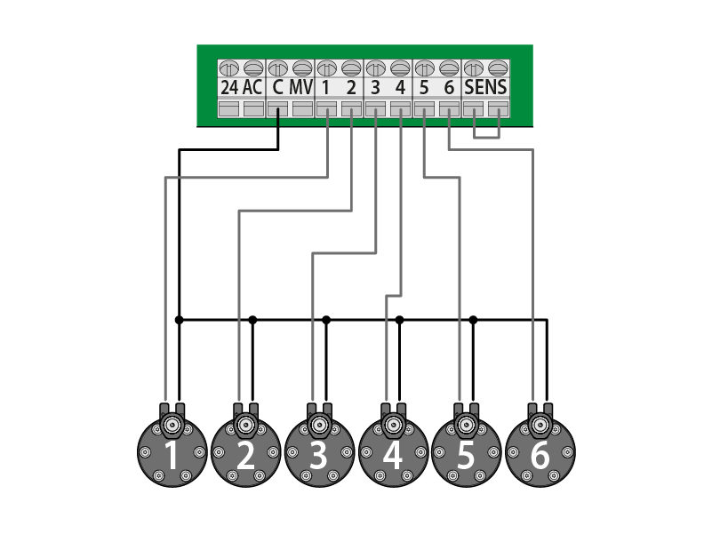 Schema elettrico di collegamento di una o più elettrovalvole alla centralina COMETA EVOLUTION 24V (cod. 8014 - 8016).