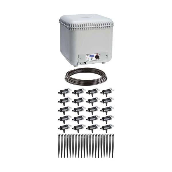 Distributore d’acqua completamente autonomo, pronto all’uso in pochi minuti e in poco spazio. Non necessita di collegamenti al rubinetto o all’impianto elettrico. Oasis® contiene 25 litri d’acqua e irriga a goccia senza sprechi fino a 20 vasi. Quattro programmi (10 - 20 - 30 - 40 giorni) per tutte le esigenze. Dispositivo elettronico per la regolazione del flusso d’acqua. Un led luminoso segnala quando il distributore è in funzione. Design compatto, elegante e curato in tutti i particolari. Funziona con una batteria alcalina da 9V. Fornito con 10 metri di tubo capillare in PVC, 20 gocciolatori e 20 picchetti fermatubo.
