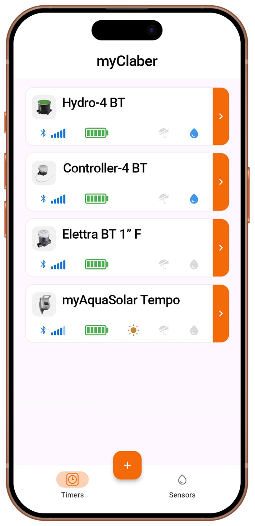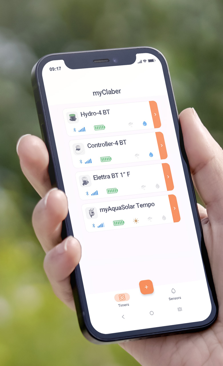 Intuitiva, potente, completa: la nuova app myClaber è il vero centro di controllo per la gestione dell'irrigazione. Progettata per offrire la massima semplicità d'uso, consente di associare i dispositivi in pochi secondi e completare la programmazione con pochi passaggi guidati. Gestione e stato dell'irrigazione, livello di carica, monitoraggio del sensore di pioggia: tutto in una mano!