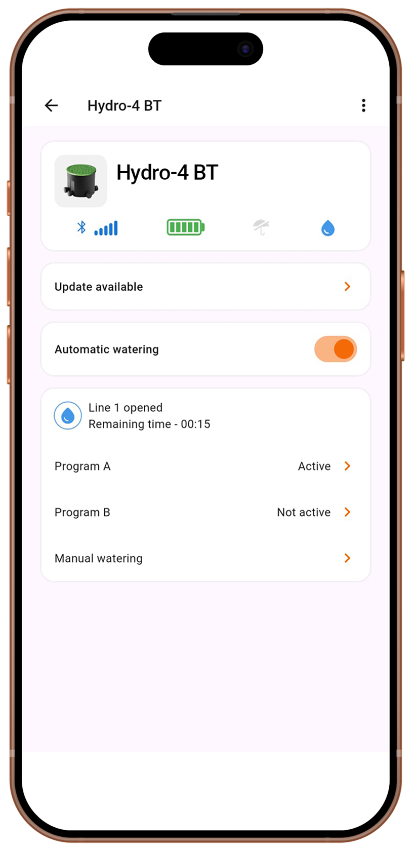 Vivi solo il bello del giardino: mai più pozzetti da aprire, con la connessione Bluetooth® puoi programmare seduto in patio o in terrazzo.