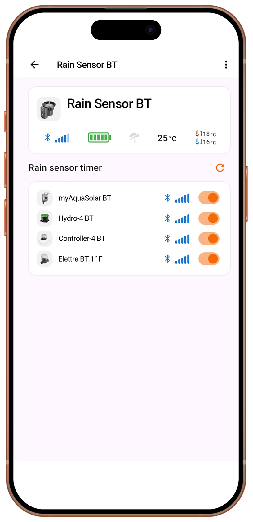 Utile accessorio che interrompe automaticamente l'irrigazione quando piove. Collegabile via Bluetooth® a tutta la gamma.