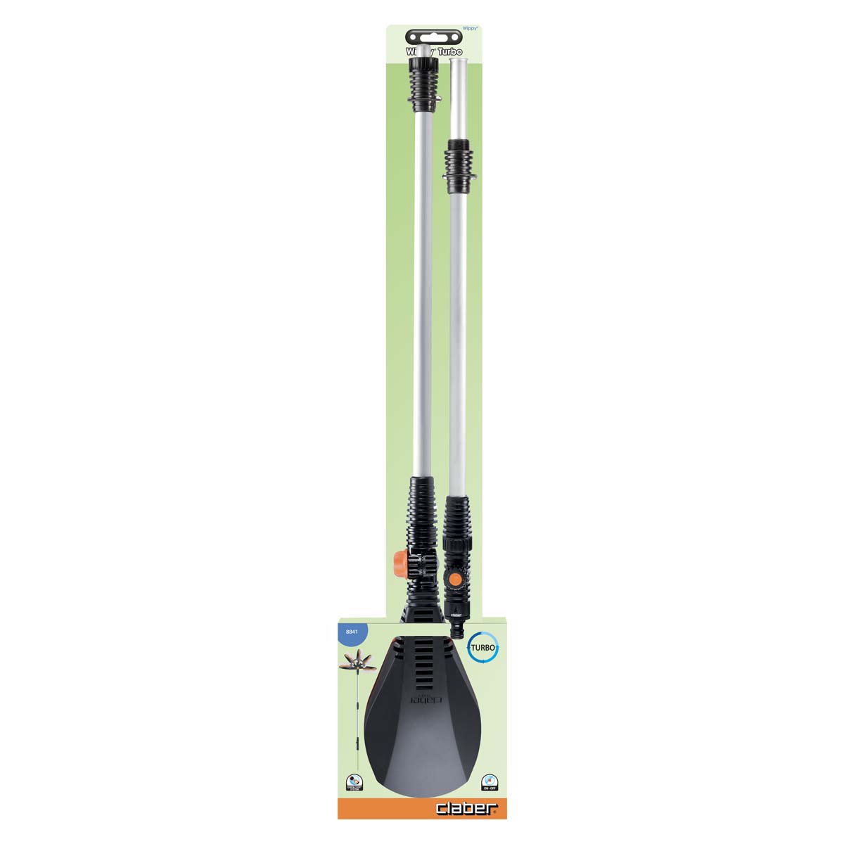 Una grande azione pulente senza fatica. La corona di setole interne ruota con la sola forza dell’acqua. Per il lavaggio rapido di auto, camper, barche e vetrate. Prolunga in alluminio anodizzato di 120 cm. Manico di 120 cm completo di rubinetto di regolazione.