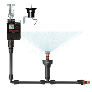 Sensore di pioggia che interrompe automaticamente il programma di irrigazione quando piove e lo riprende, all’orario stabilito, quando ritorna il bel tempo.