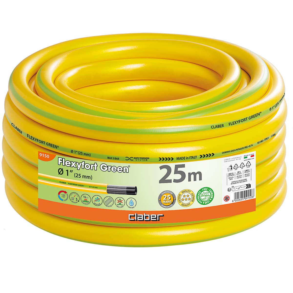 Tubo magliato con speciale annodatura antitorsione: non si contorce nemmeno alle pressioni più elevate. Antialghe e anti UV. I tubi Flexyfort Green sono sicuri al 100% in quanto privi di metalli pesanti e di ftalati.
